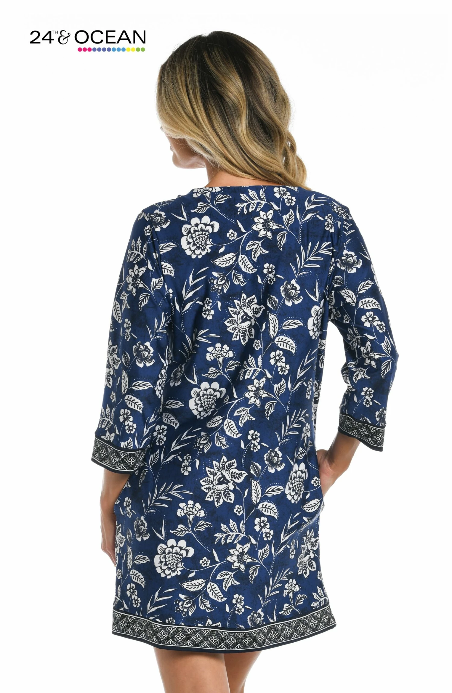 24th & Ocean – Go from beach to brunch with a quick switch of accessories in this casually cool Shift Dress Cover-Up. Made from nylon with a hint of elastane for ease of moment, it’s styled with a V-neck and three quarter sleeves for throw-on-and-go ease.