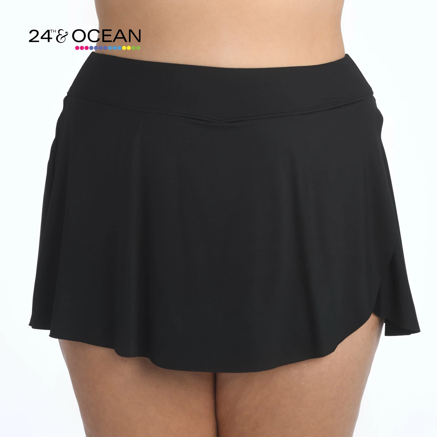 24th & Ocean – This lovely yet tactile petal swim skort by 24th & Ocean suits all of your needs for your pool bottom. Pairable with any favorite matching top, this piece also offers full coverage in rear. Social storage pocket built in.
