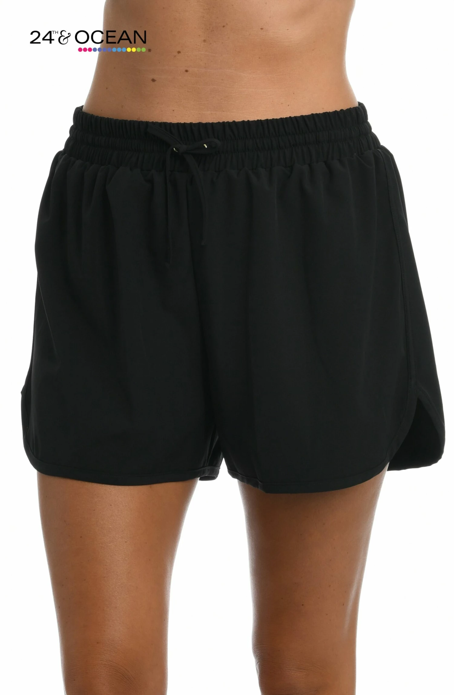 24th & Ocean – Available in dark solid hues that smooth and slim the silhouette, these boardshorts with side slits by 24th & Ocean offer a little extra coverage when you need it. A hint of spandex gives them just the right amount of stretch to keep you moving comfortably all day whether kayaking, walking along the shore or even hiking to a tropical waterfall.