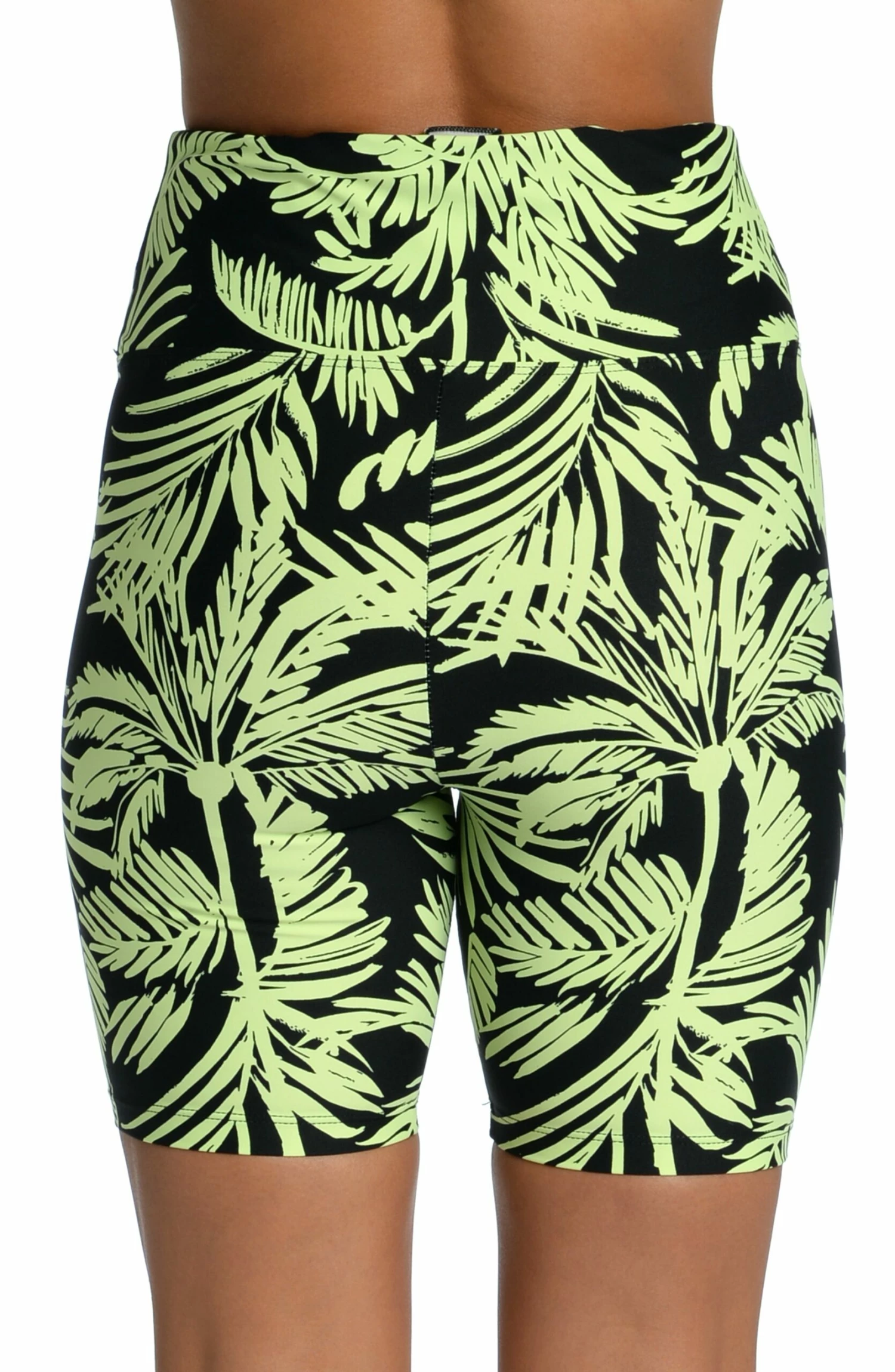 With a tropical palm print, these bike shorts will have you on island time the moment you pull them on. Styled with a high-waist design and a flat front that instantly slims the tummy, they also feature a cellphone/media pocket so you can take your tech to go.