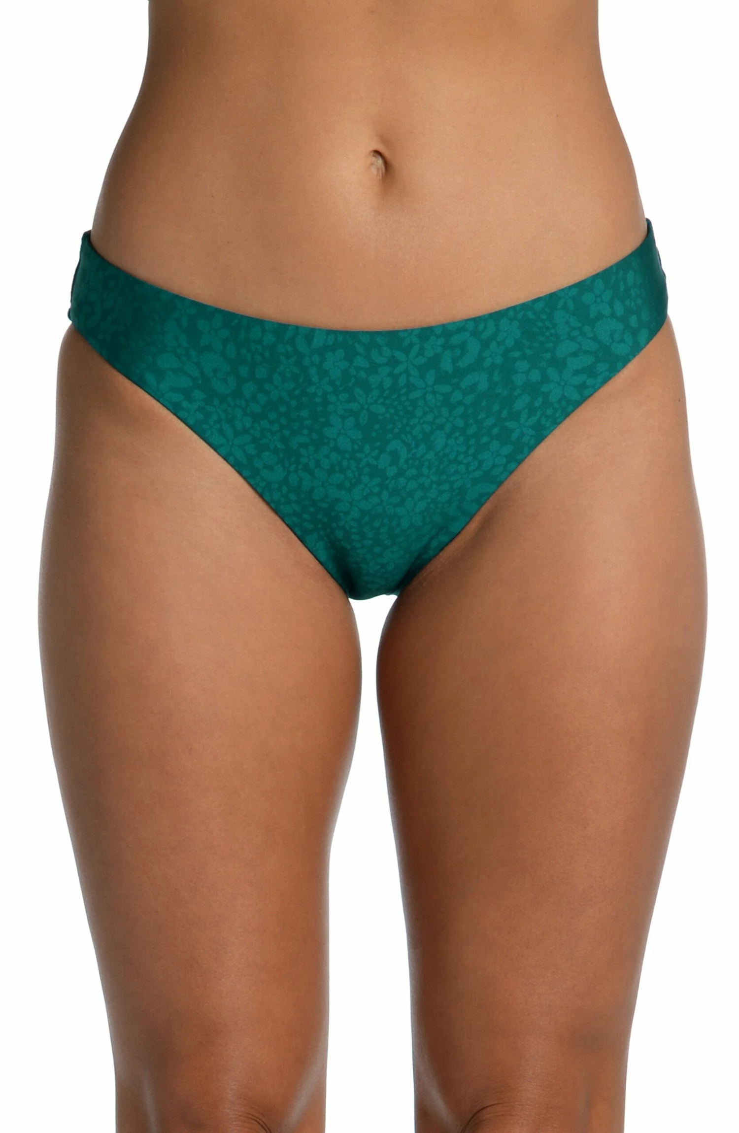 Cool shades of sea blue and jade green offer a chic spin on the sweet and feminine ditsy print. These bikini bottoms feature a hip-flattering cut and just-right coverage in back for a comfy, confident fit.