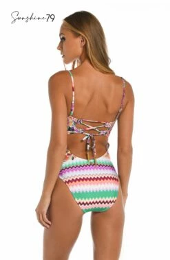 Cool shades of sea blue and jade green offer a chic spin on the sweet and feminine ditsy print. These shorty shorts feature a shirred waist that slims and tones the tummy. A booty cut keeps things sexy without getting too cheeky.
