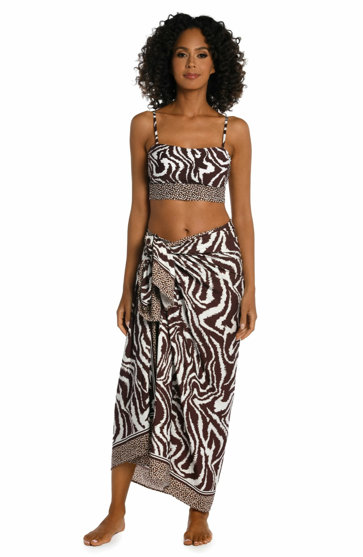 Something fierce, this resort-ready pareo proves that opposites attract in a contrasting animal-inspired print. This sexy sarong is equally perfect for layering over bikini bottoms and one-piece suits. The one-size-fits all design ensures a flowy fit, and the side tie keeps everything under wraps.