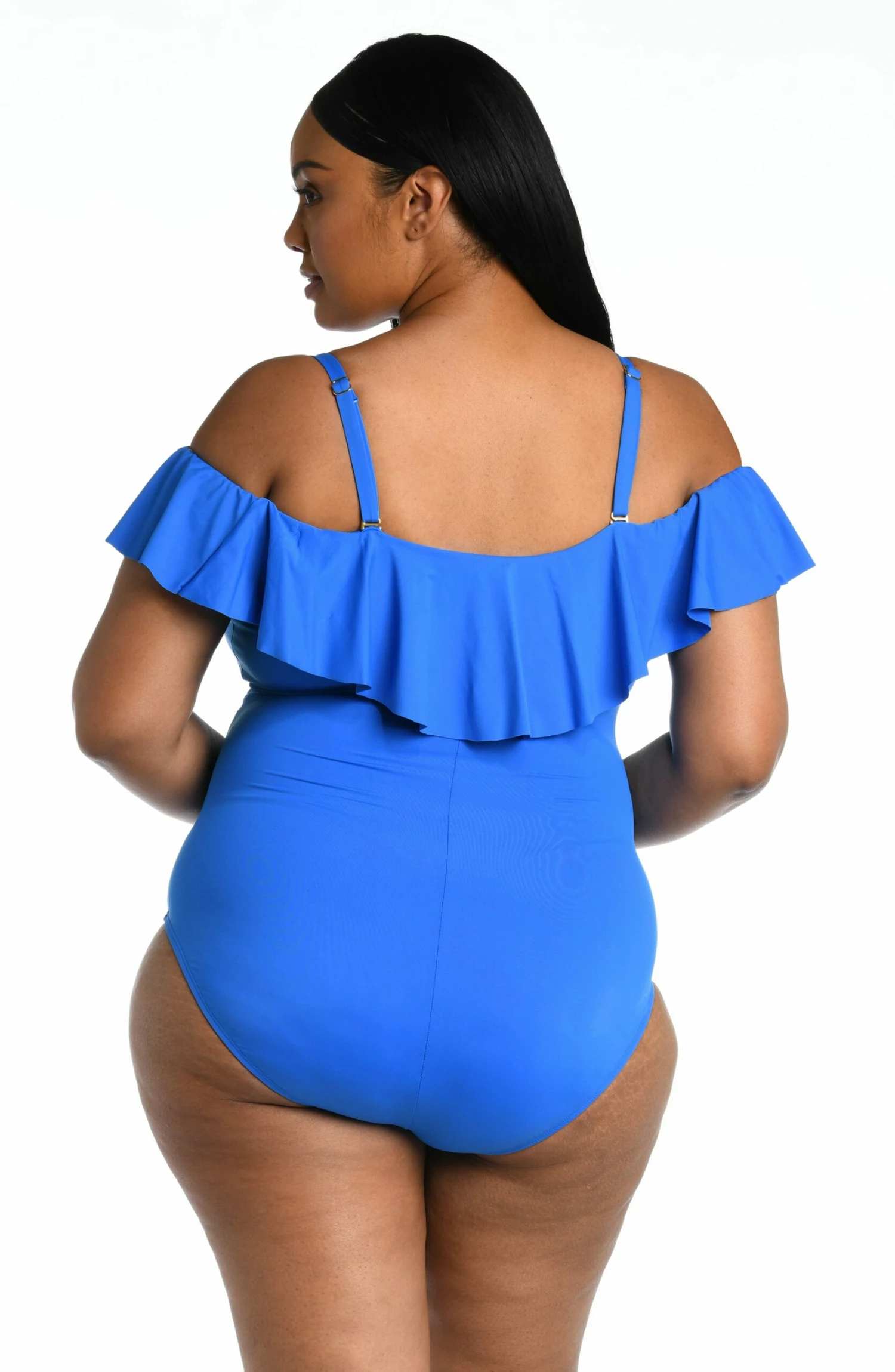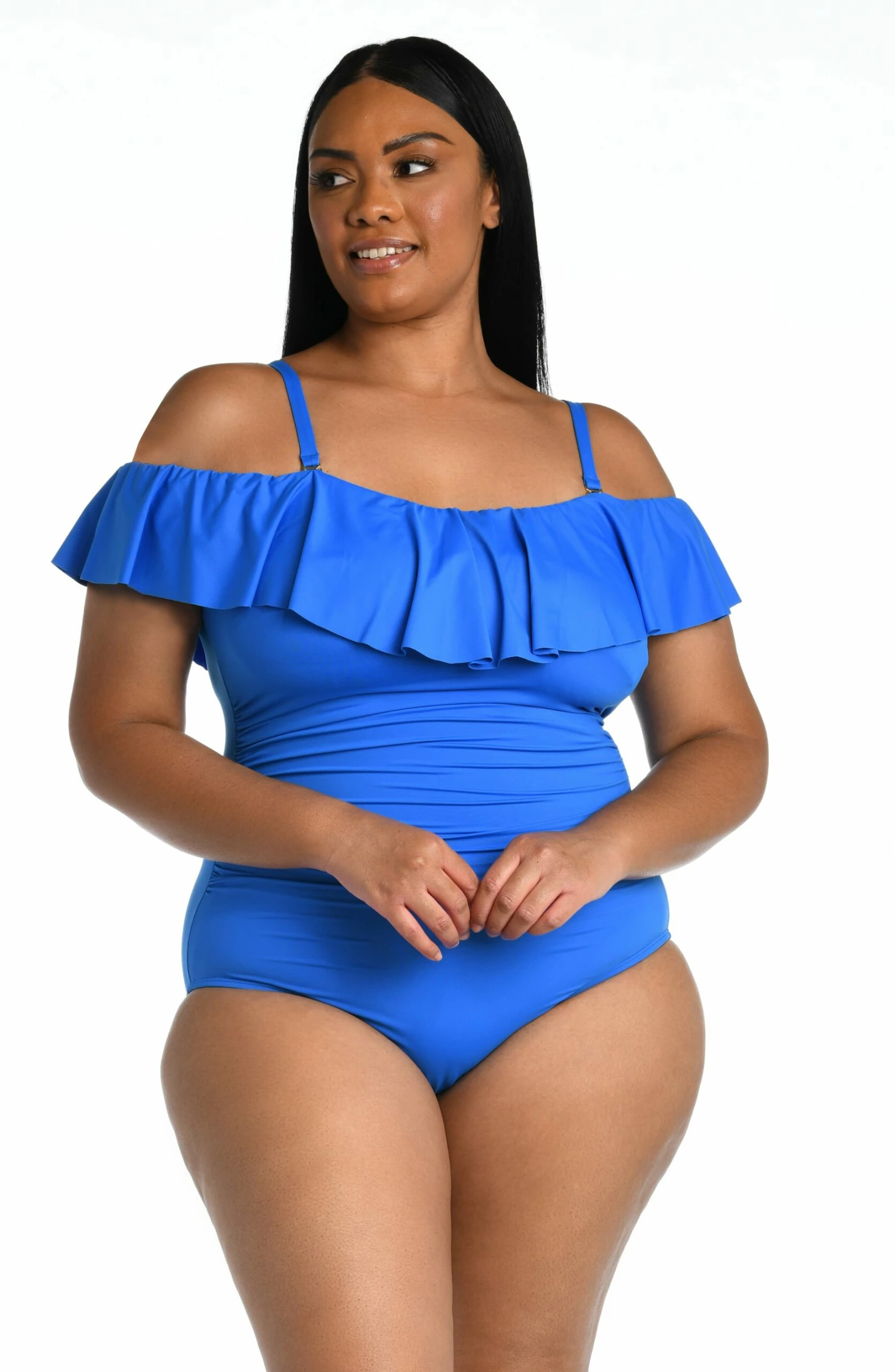 Offering a feminine take on retro-inspired design, this one-piece suit radiates iconic style. Romantic ruffles draw attention to your collarbone, while slimming side ruching helps define the waist. The coverage in the rear ensures this suit stays put.