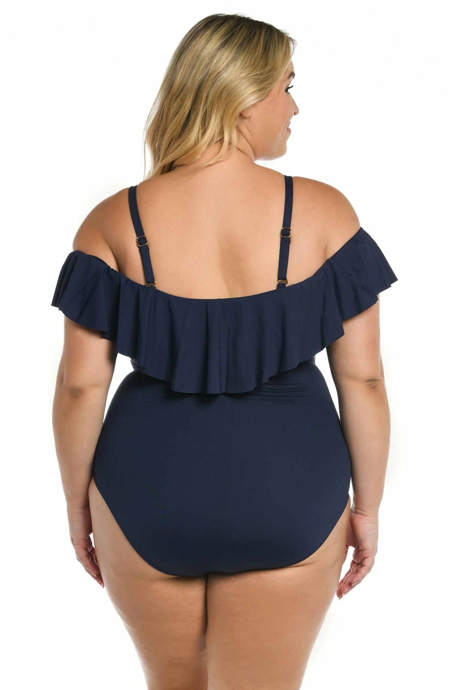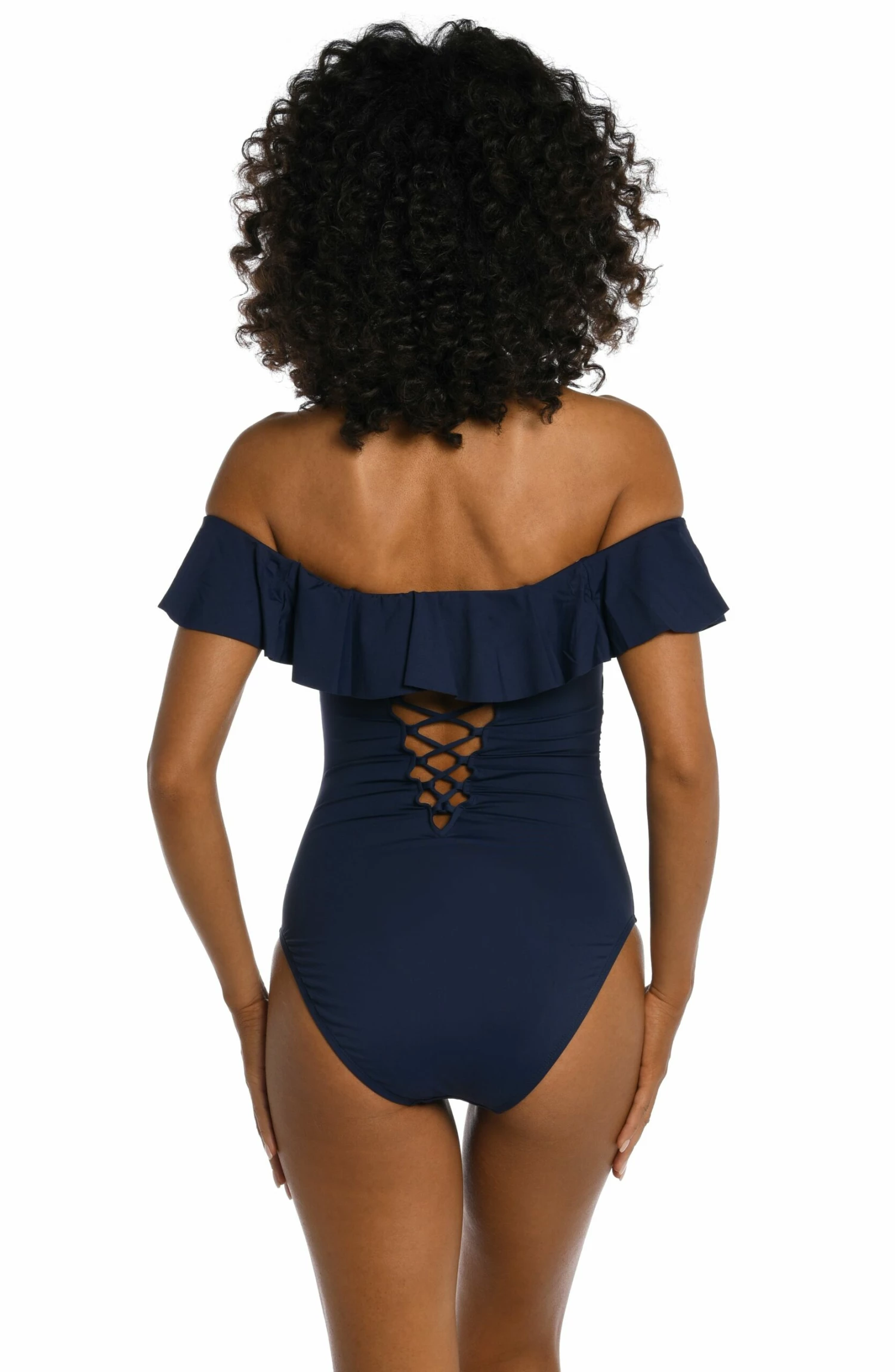 Offering a feminine take on retro-inspired design, this one-piece suit radiates iconic style. Romantic ruffles draw attention to your collarbone, while slimming side ruching helps define the waist. The lace-up back reveals just a hint of skin for the perfect amount of sexy and coverage in the rear ensures this suit stays put.