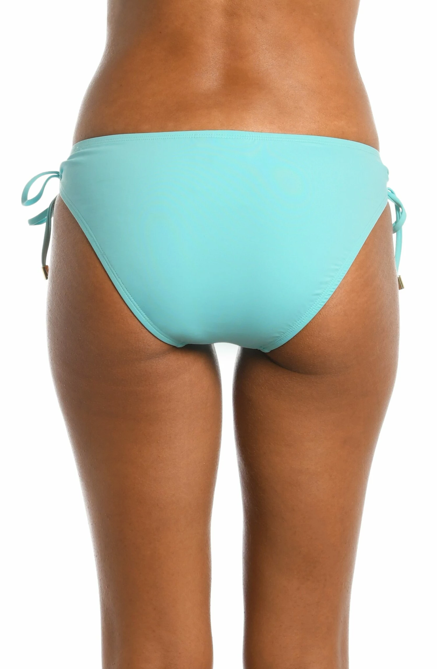 These bikini bottoms leave a little something to the imagination with adjustable side tie loops fitted with metal tips that reveal just a hint of skin. The hipster cut flatters the hips with just enough coverage in back so you won’t have to worry about these bottoms riding up.