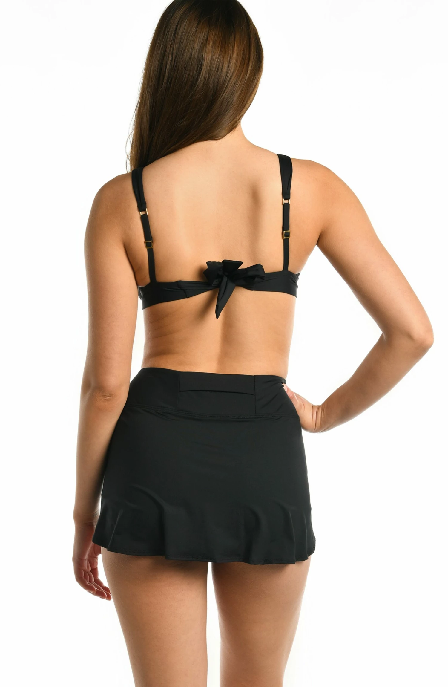 This A-line mini skirt design features a high-waisted silhouette and a flowing hemline, creating a classic and elegant look that can be dressed up or down.