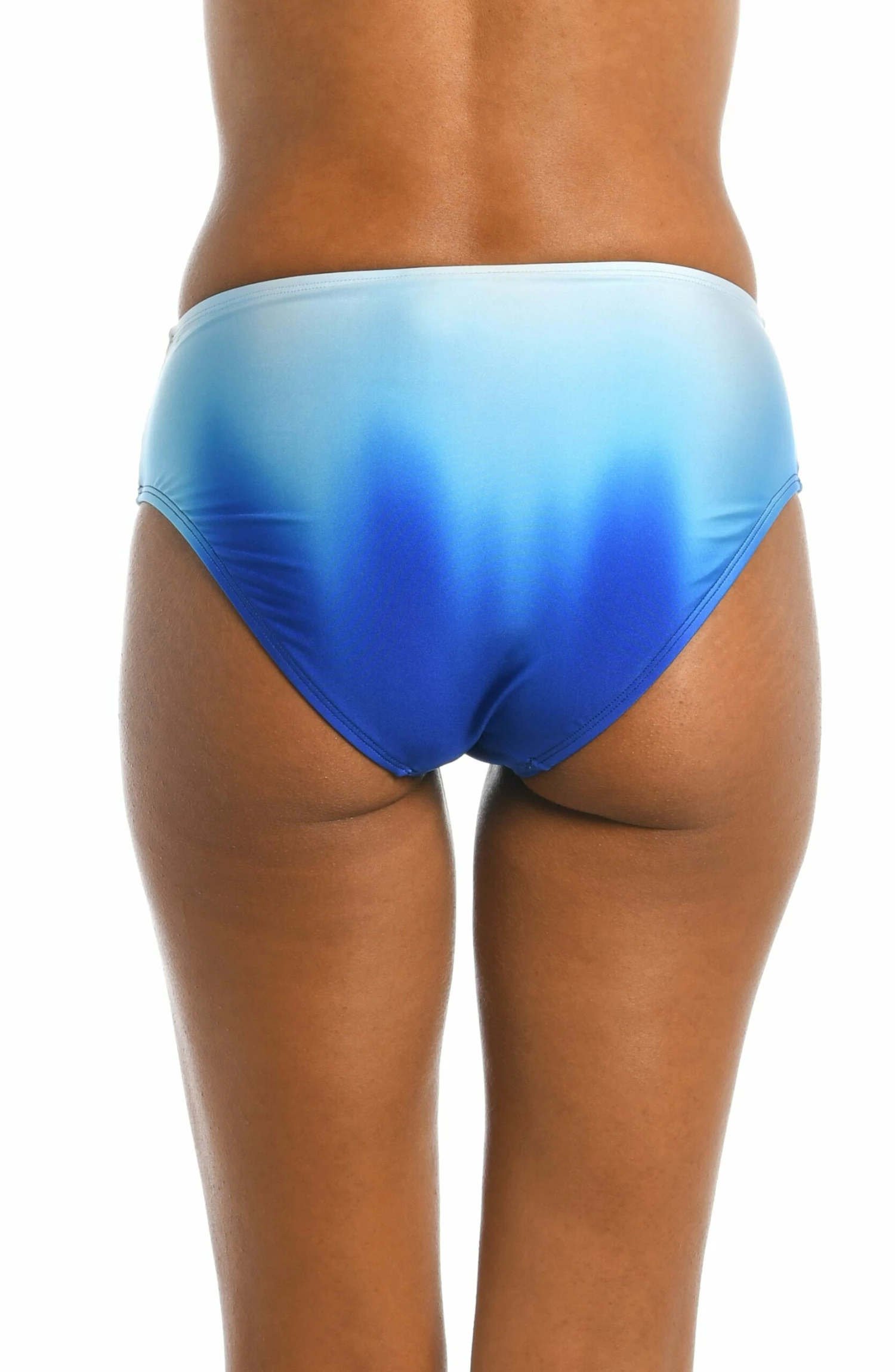 Gorgeous ombre shades of blue fade into crisp white on these bikini bottoms, adding movement and depth to the design. We love the way these mid-waist bottoms provide a little extra coverage yet still manage to look super sexy. Overlapping sash bands, built-in tummy control and moderate coverage in back give you all the confidence you need to hit the beach running.