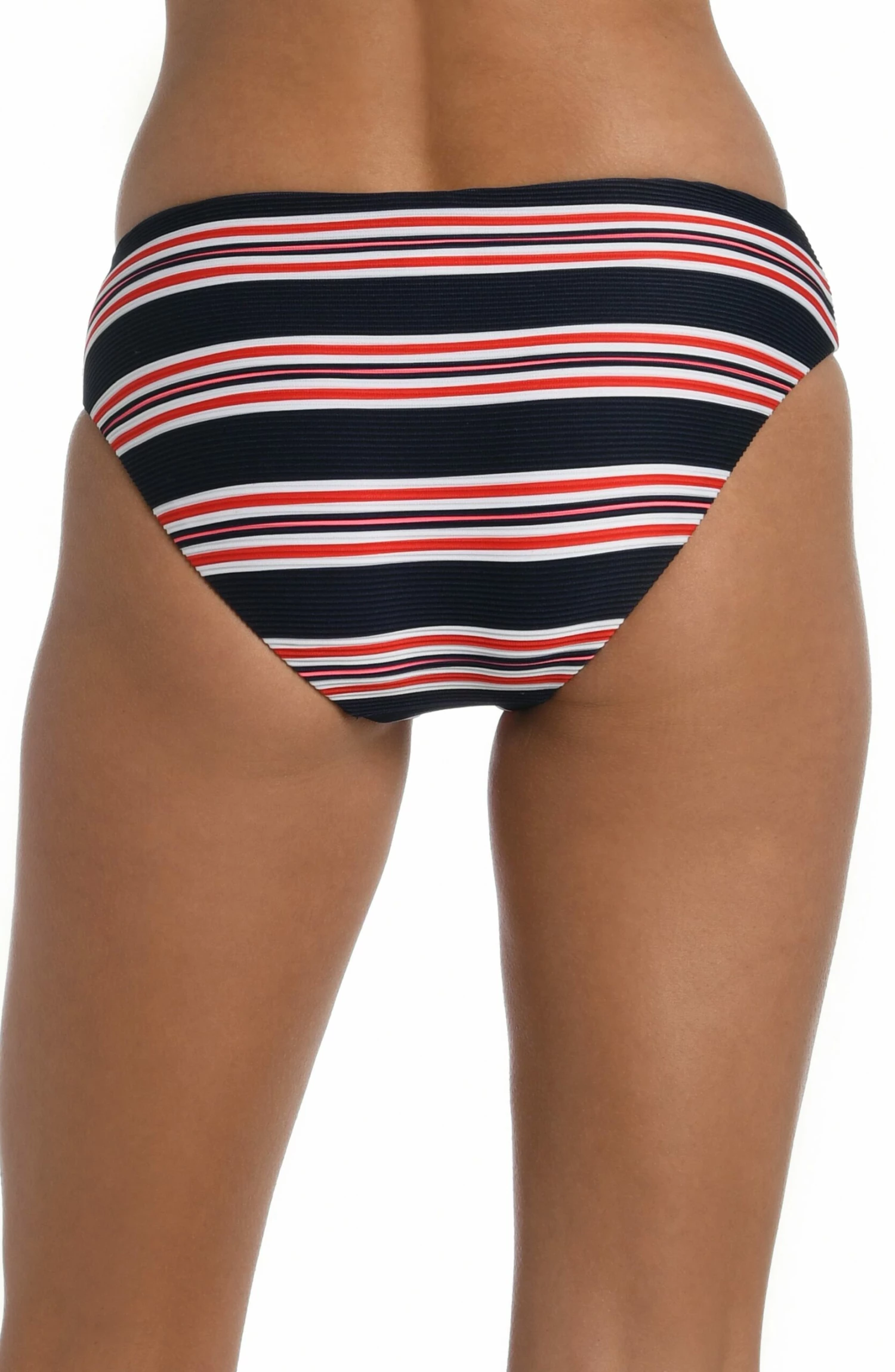 Show your stripes in patriotic style with these red, white and blue bikini bottoms. If you had to choose just one pair to wear all summer long, these would be the ones. The striped pattern can be worn with a solid top for mix-and-match versatility. A classic hipster cut hugs the hips for a sexy fit, while moderate coverage in back ensures things don’t get too cheeky.