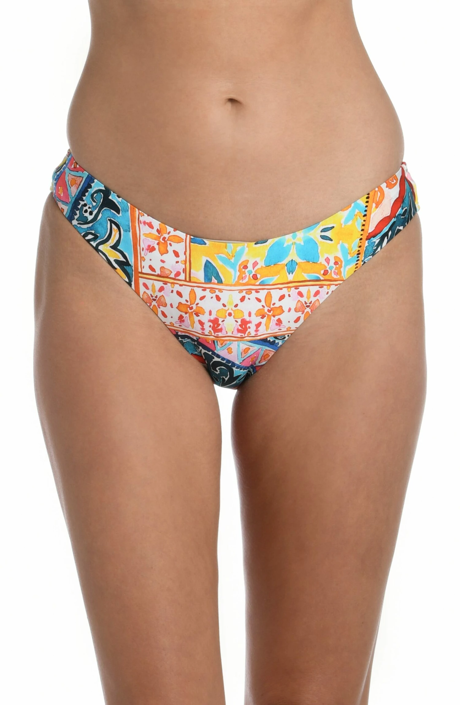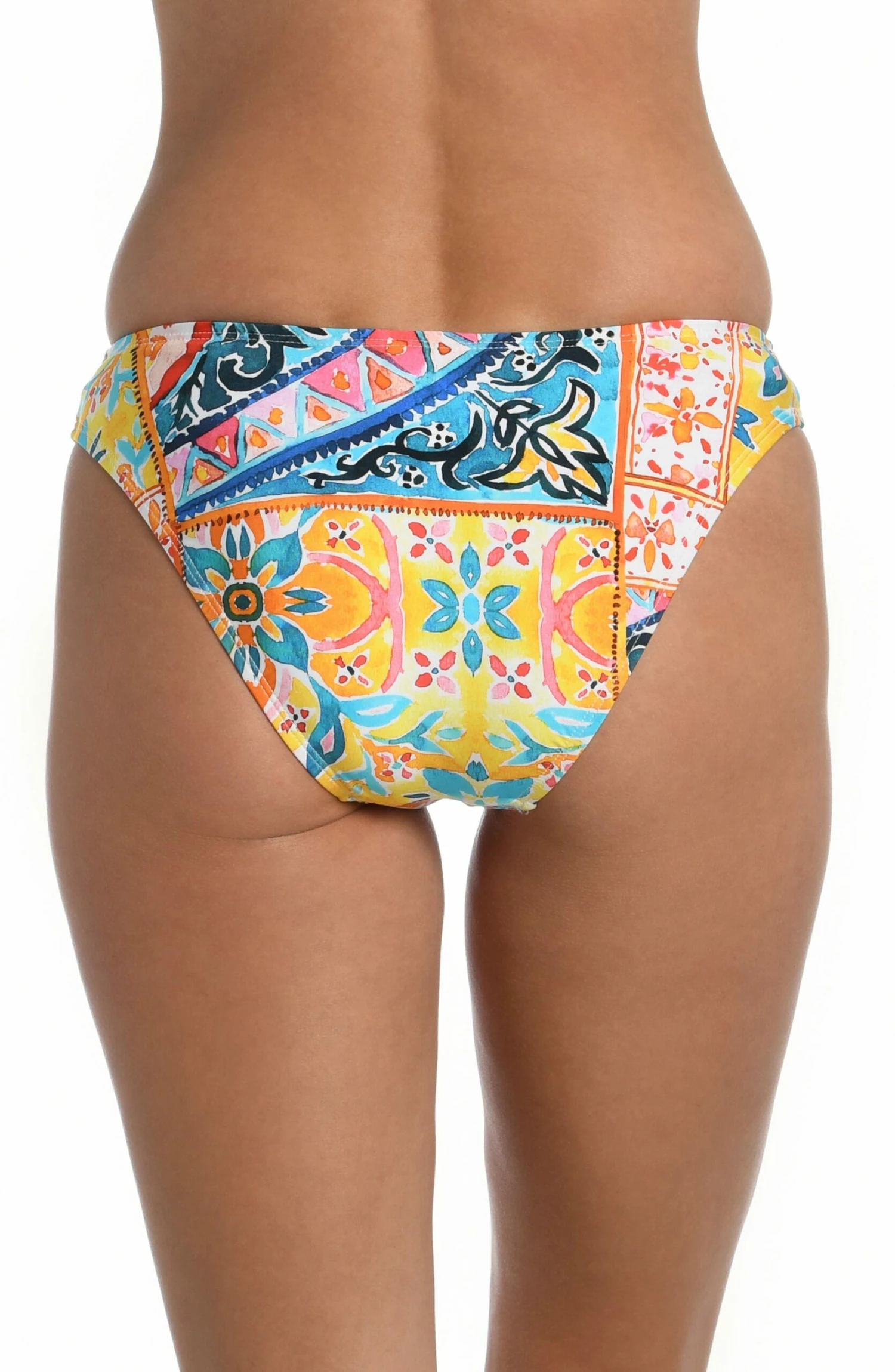 The patchwork of vibrant colors and patterns on these swim bottoms recalls the exquisitely tiled architecture found in Morocco. Super sexy, yet simple, these scoop-front bikini bottoms feature high-cut legs and a hipster fit that instantly flatters the figure. Cheeky rear coverage allows you to highlight your assets.