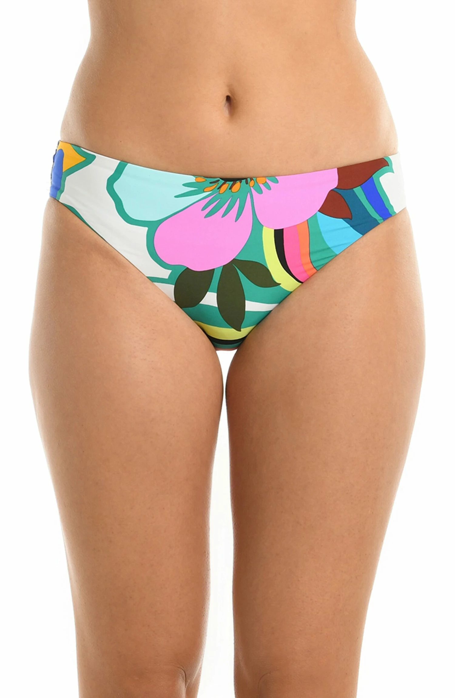 This playful and energetic design is perfect for a day spent lounging on the beach or soaking up the sun by the pool. Bursting with color, these vibrant tropical print swim bottoms with moderate coverage in back, gives you all the confidence you need to take on the day, whether swimming, snorkeling or paddle boarding.