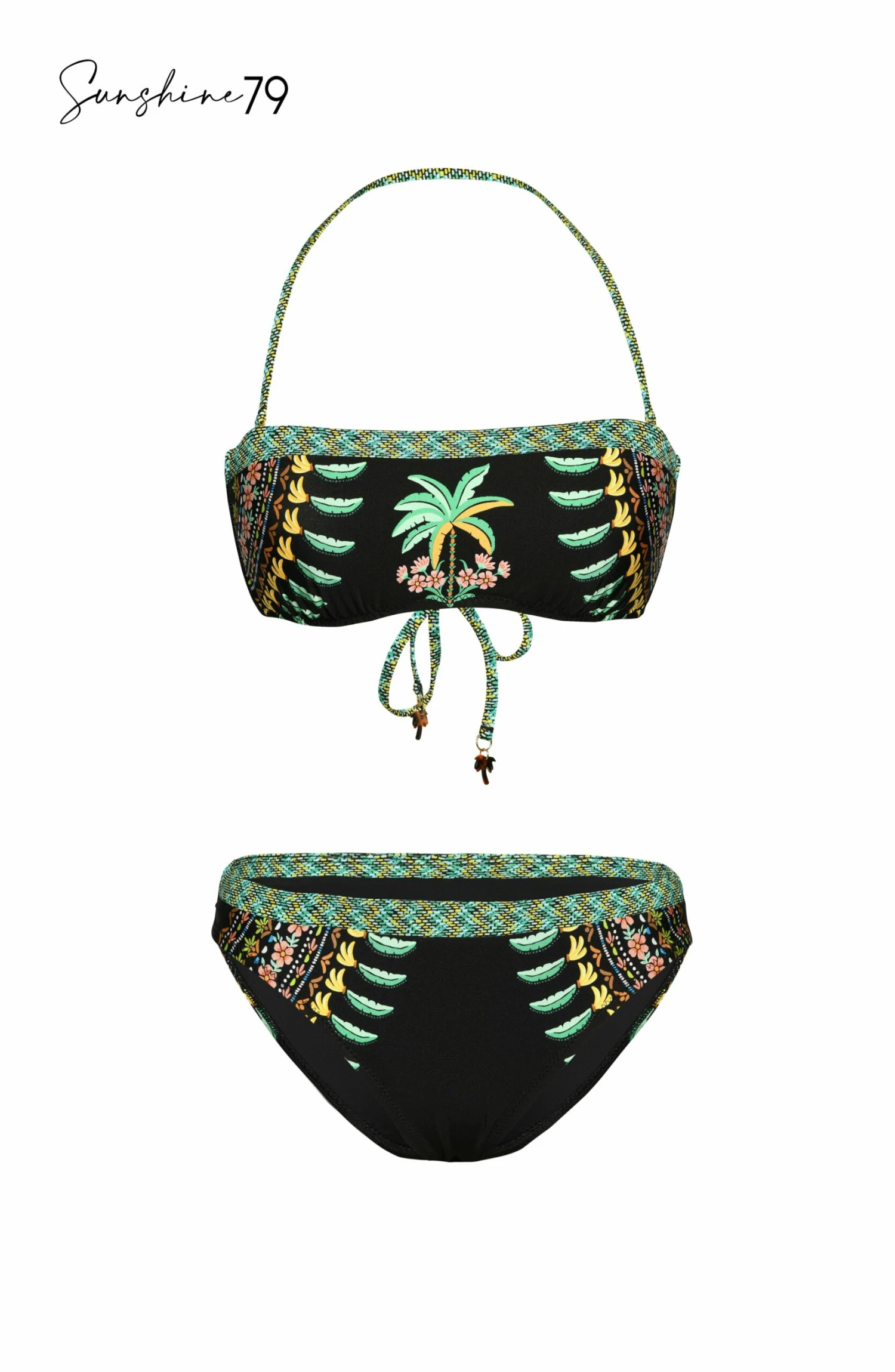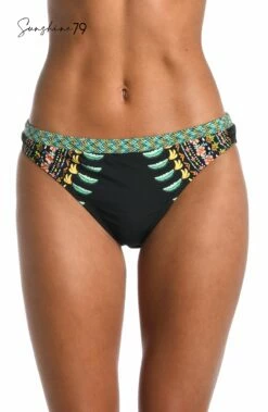 The bright neon colors of yellow, pink, and aquamarine pop against the black background, creating a bold and striking look on this print that is sure to turn heads. Resting at the hips for figure-flattering style, they offer just enough coverage in back to ensure things don’t get too cheeky.
